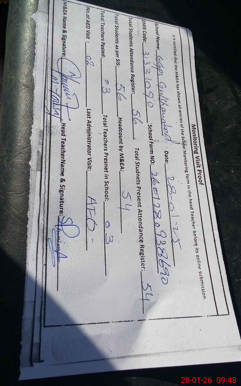 | Attendance Register | Head Teacher | MEA with School | Visit Proof |