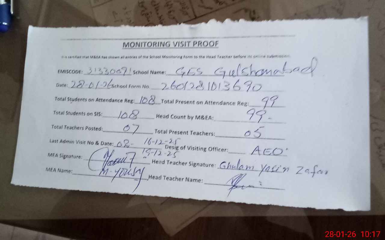 | EMIS Code: 31330091 | Name of School: GES GULSHAN ABAD | |||