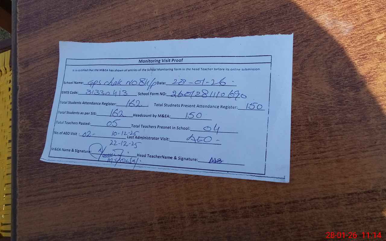 | EMIS Code: 31330413 | Name of School: GPS CHAK 84/P | |||
