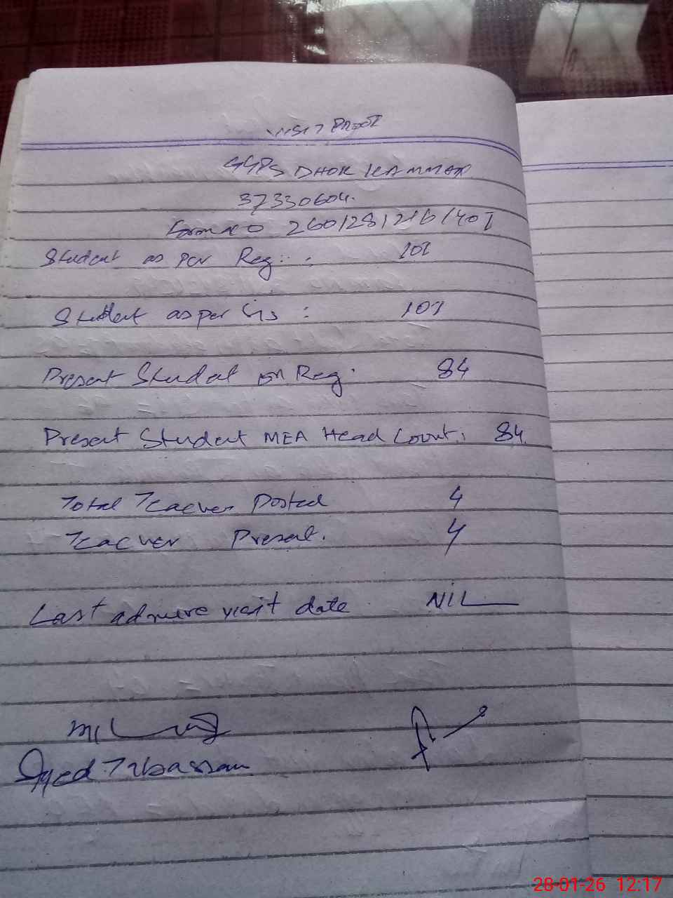 | Attendance Register | Head Teacher | MEA with School | Visit Proof |