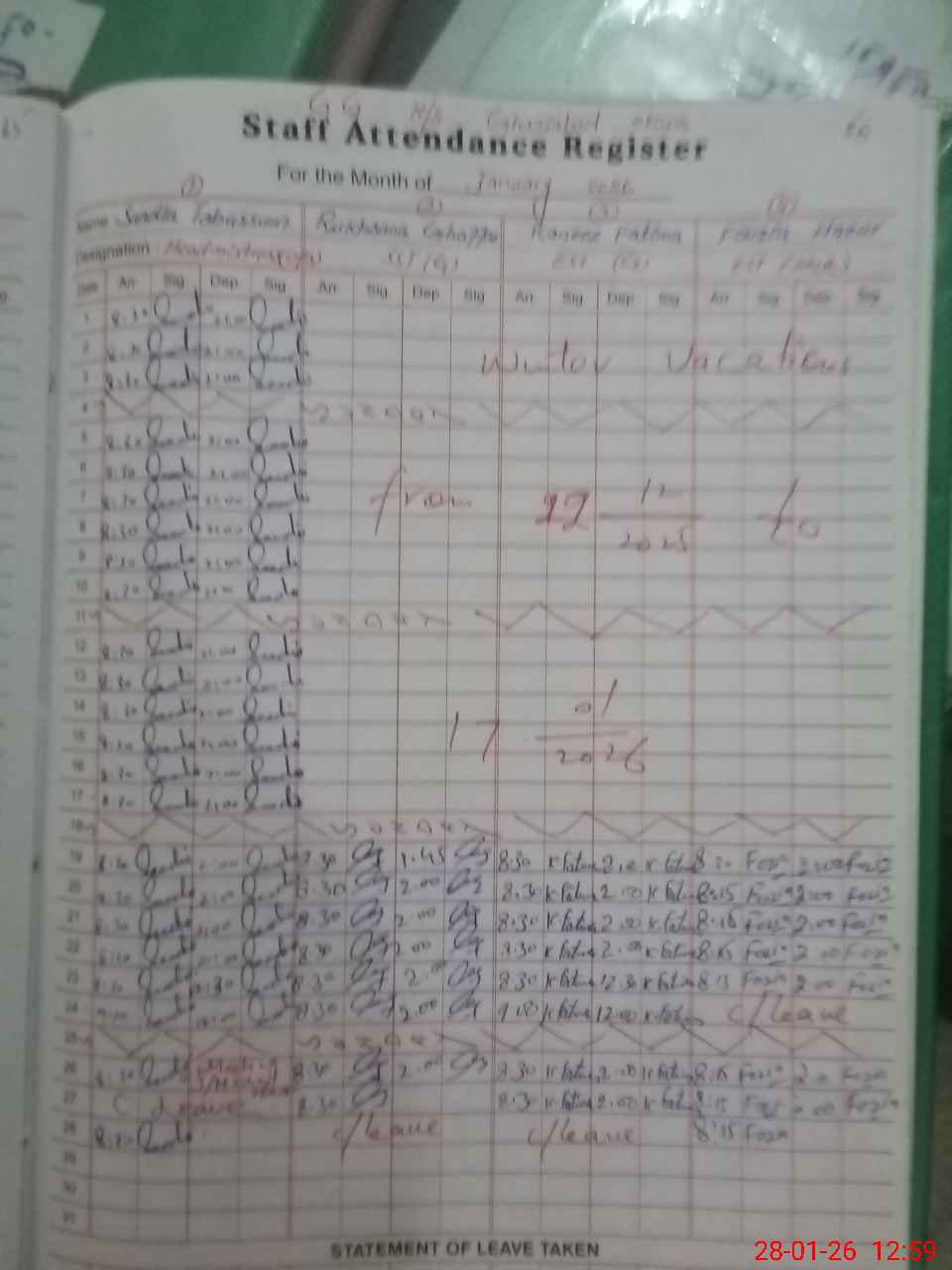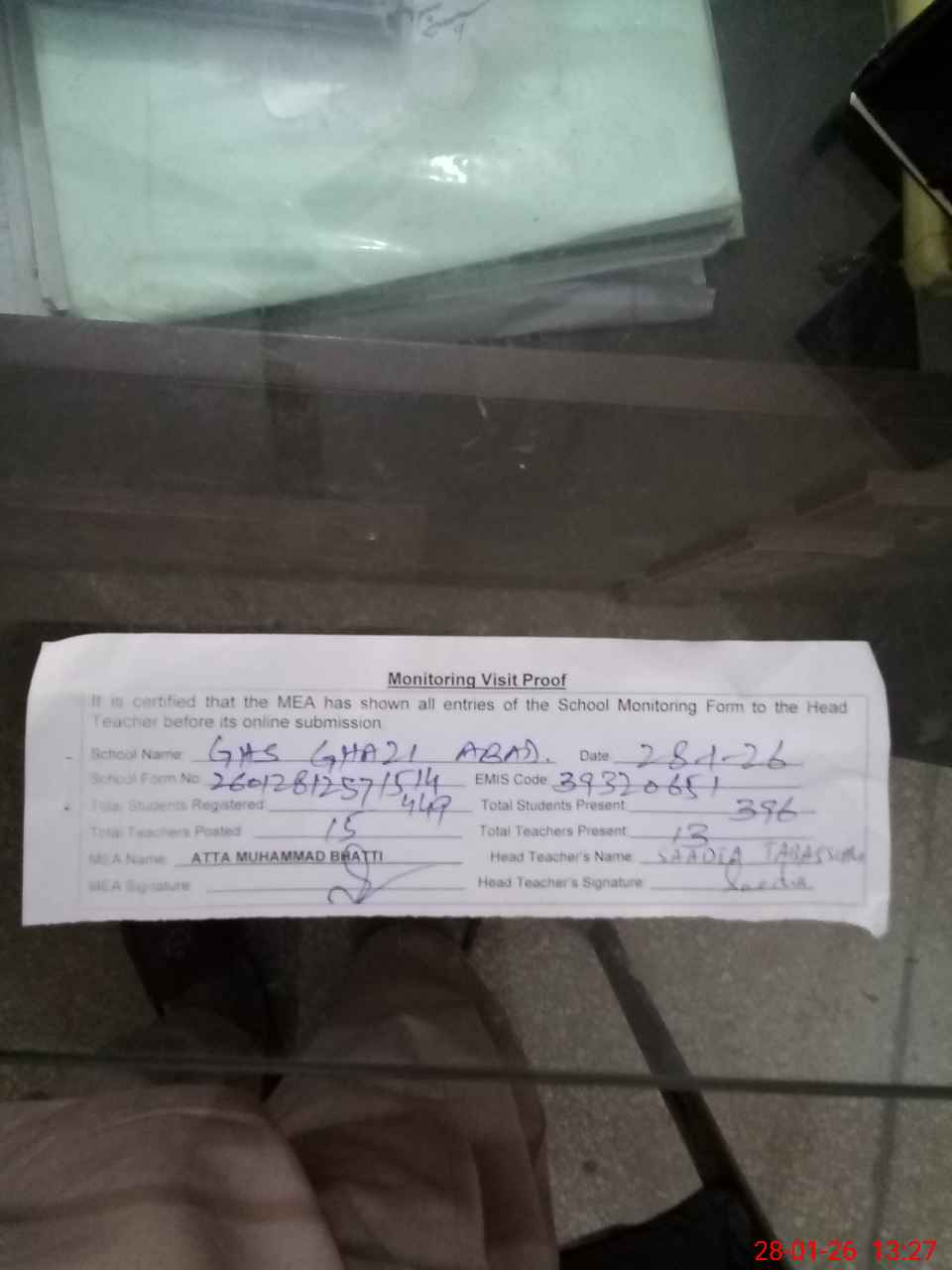 | Attendance Register | Head Teacher | MEA with School | Visit Proof |