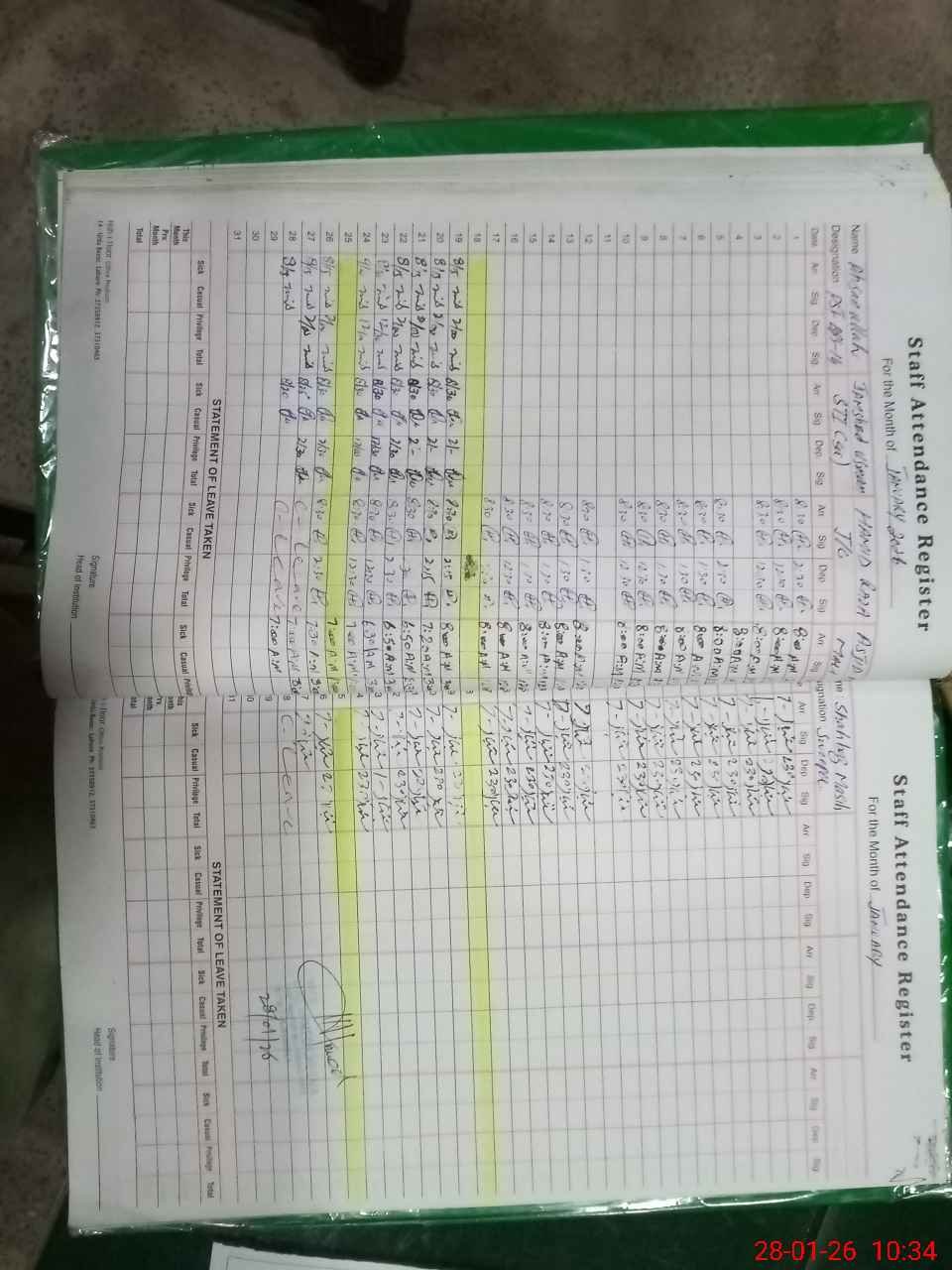 | CNIC | Full Name | Designation | R/C | Absence During Last Calender Month |