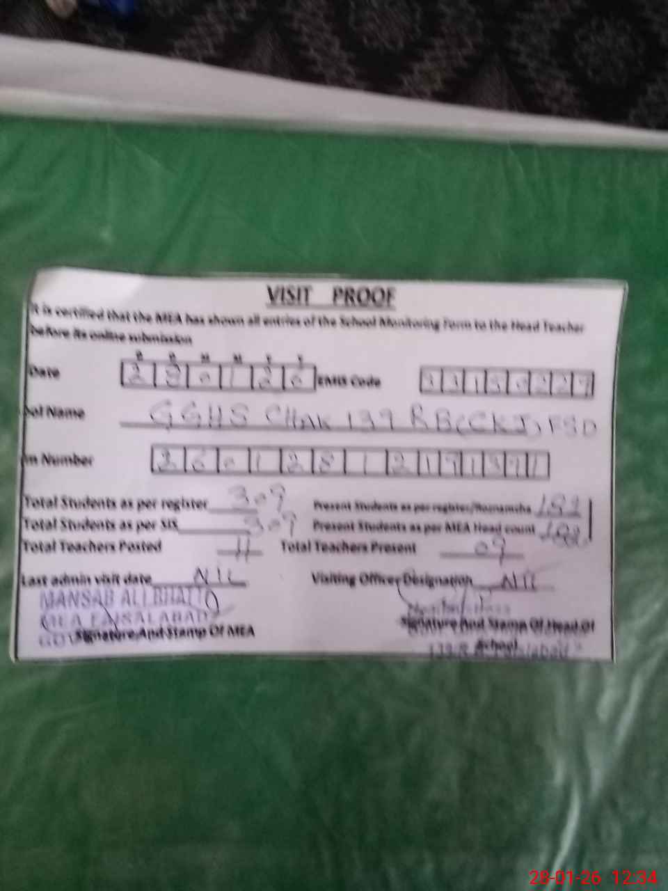 | EMIS Code: 33150229 | Name of School: GGHS CHAK 139 RB CHAK JHUMRA FSD | |||