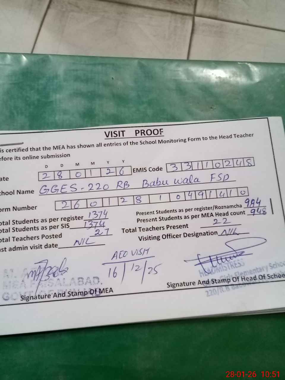 | EMIS Code: 33110248 | Name of School: GGES 220 RB BABO WALA | |||