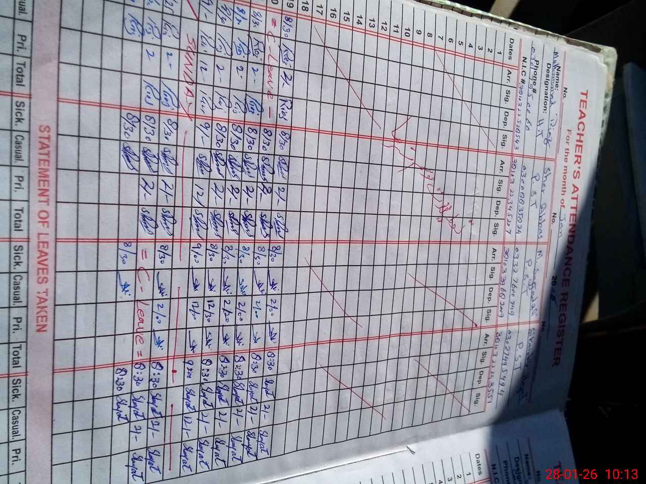 | CNIC | Full Name | Designation | R/C | Absence During Last Calender Month |