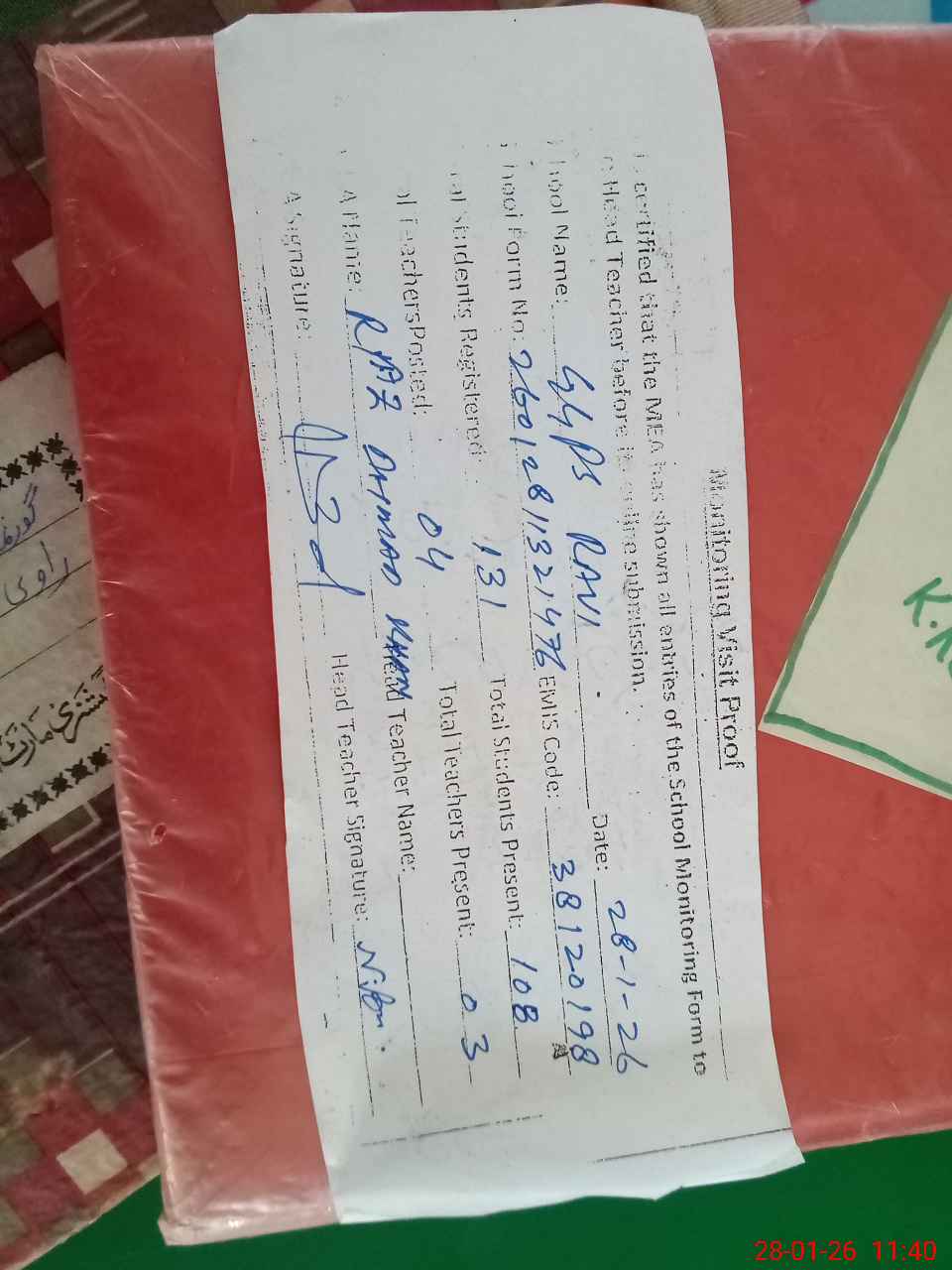 | Attendance Register | Head Teacher | MEA with School | Visit Proof |