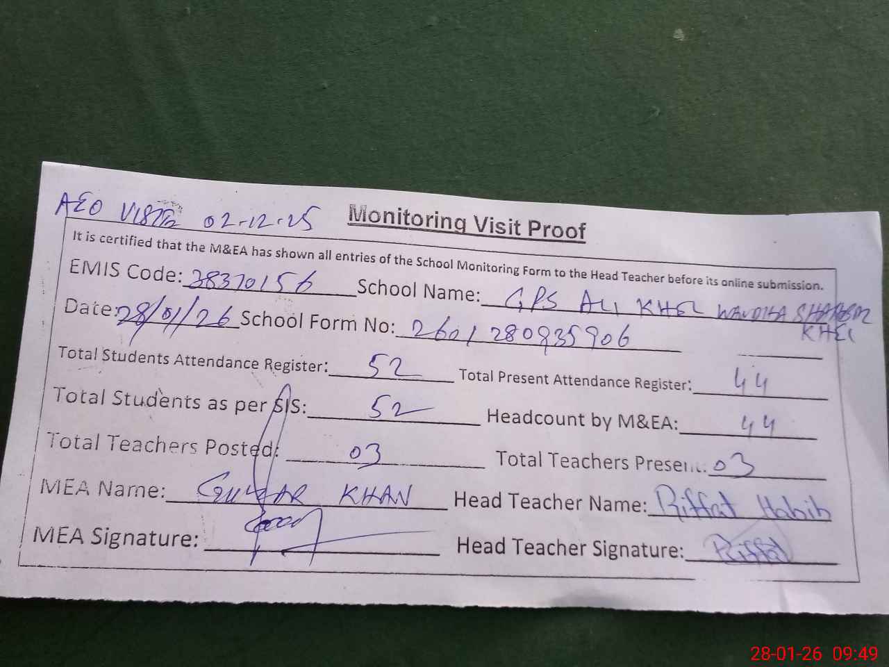 | EMIS Code: 38310156 | Name of School: GPS ALI KHEL WANDHA SHAHBAZ KHEL | |||