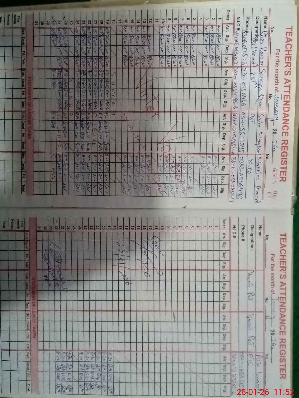 | Name: RI**** RA**** Designation: (School Headmaster's/Headmistress's) PST Phone/Cell Number: 03**** |