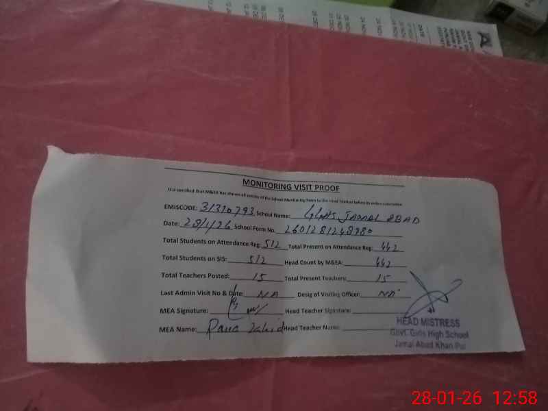 | EMIS Code: 31310793 | Name of School: GGHS JAMAL ABAD | |||