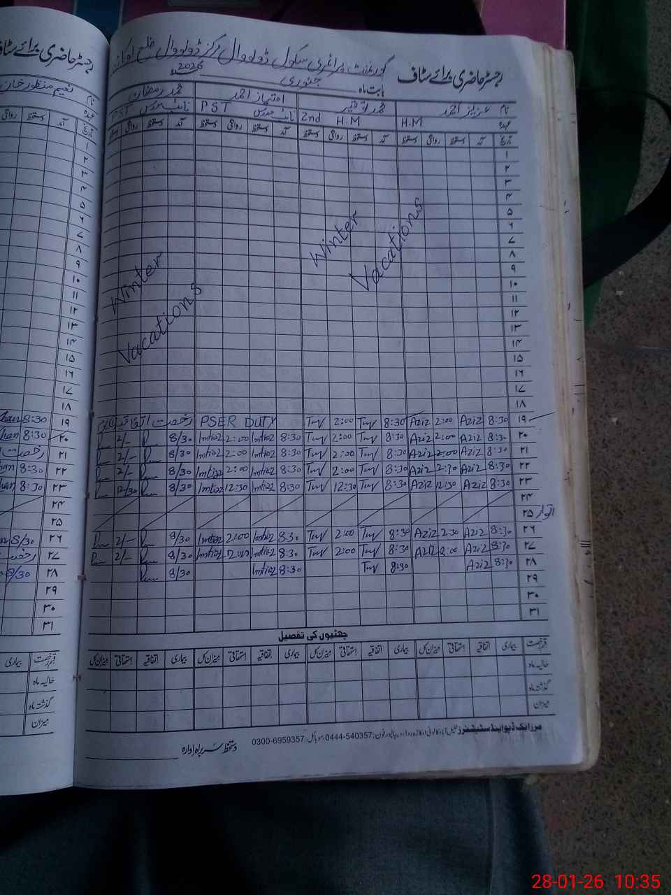| Name: Az**** Ah**** Designation: (School Headmaster's/Headmistress's) PST Phone/Cell Number: 03**** |