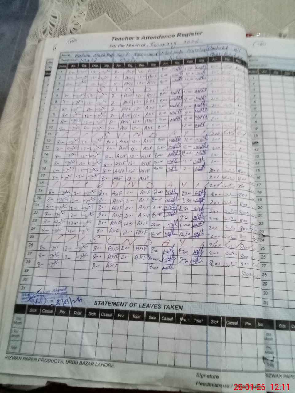 | 37**** | Sy**** Sh**** La**** | HEADMASTER | Regular | 0 | 0 | 0 | 0 | 0 | 0 | 0 | 0 | 0 | |