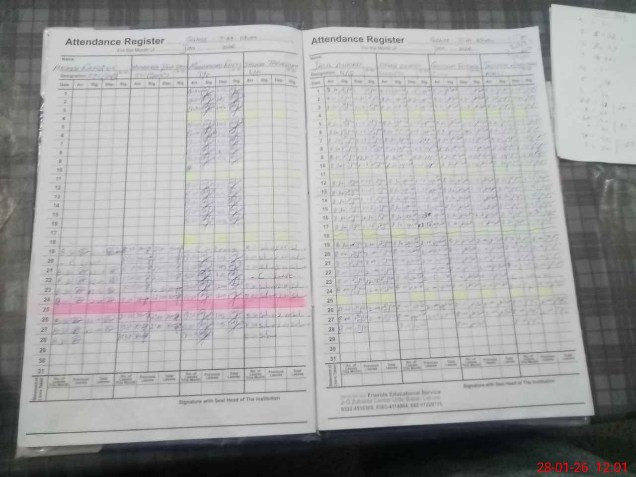 | CNIC | Full Name | Designation | R/C | Absence During Last Calender Month |