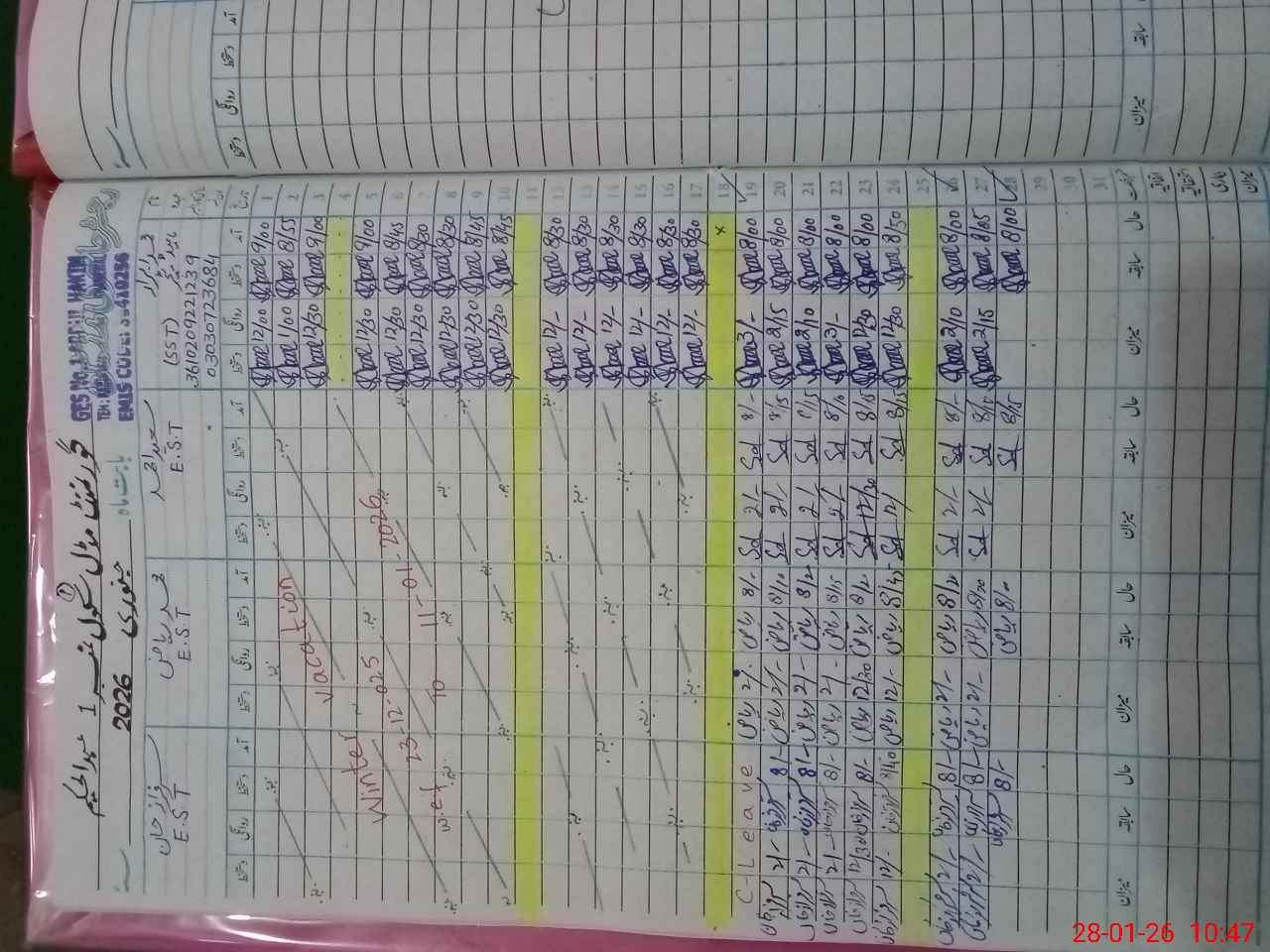 | CNIC | Full Name | Designation | R/C | Absence During Last Calender Month |