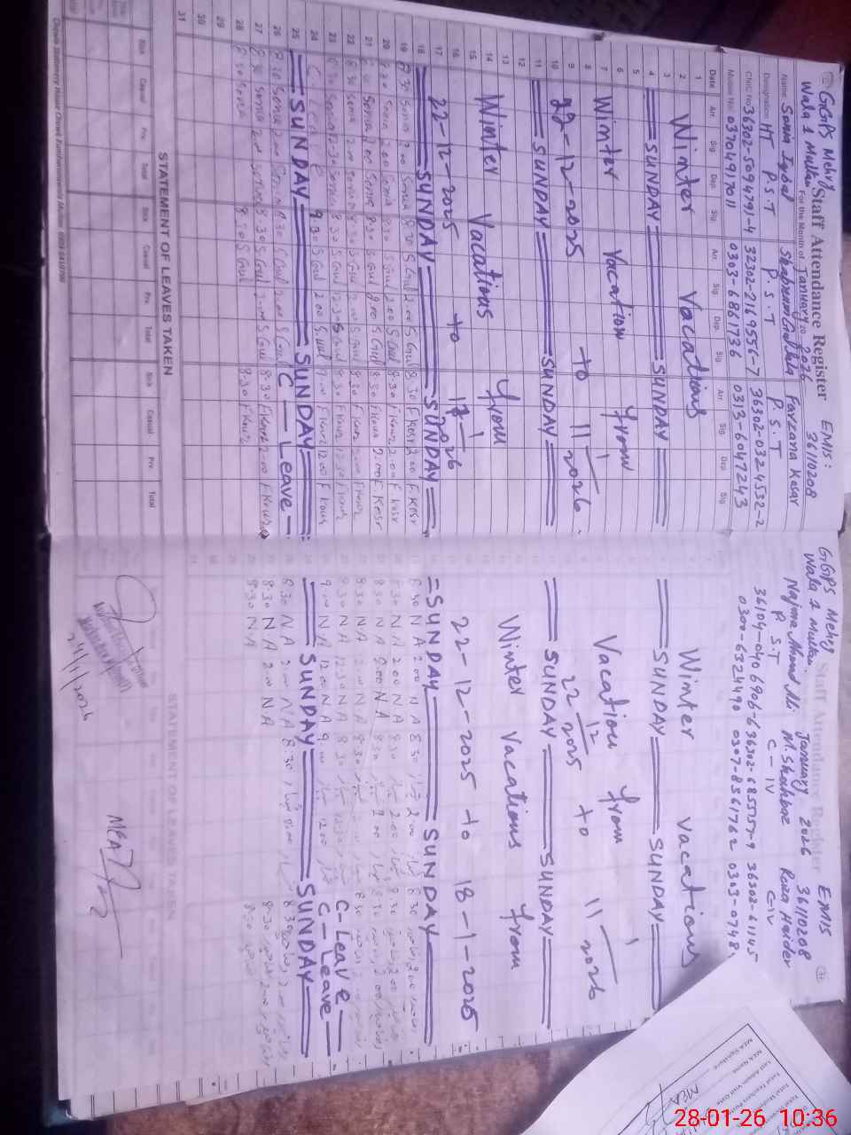 | CNIC | Full Name | Designation | R/C | Absence During Last Calender Month |