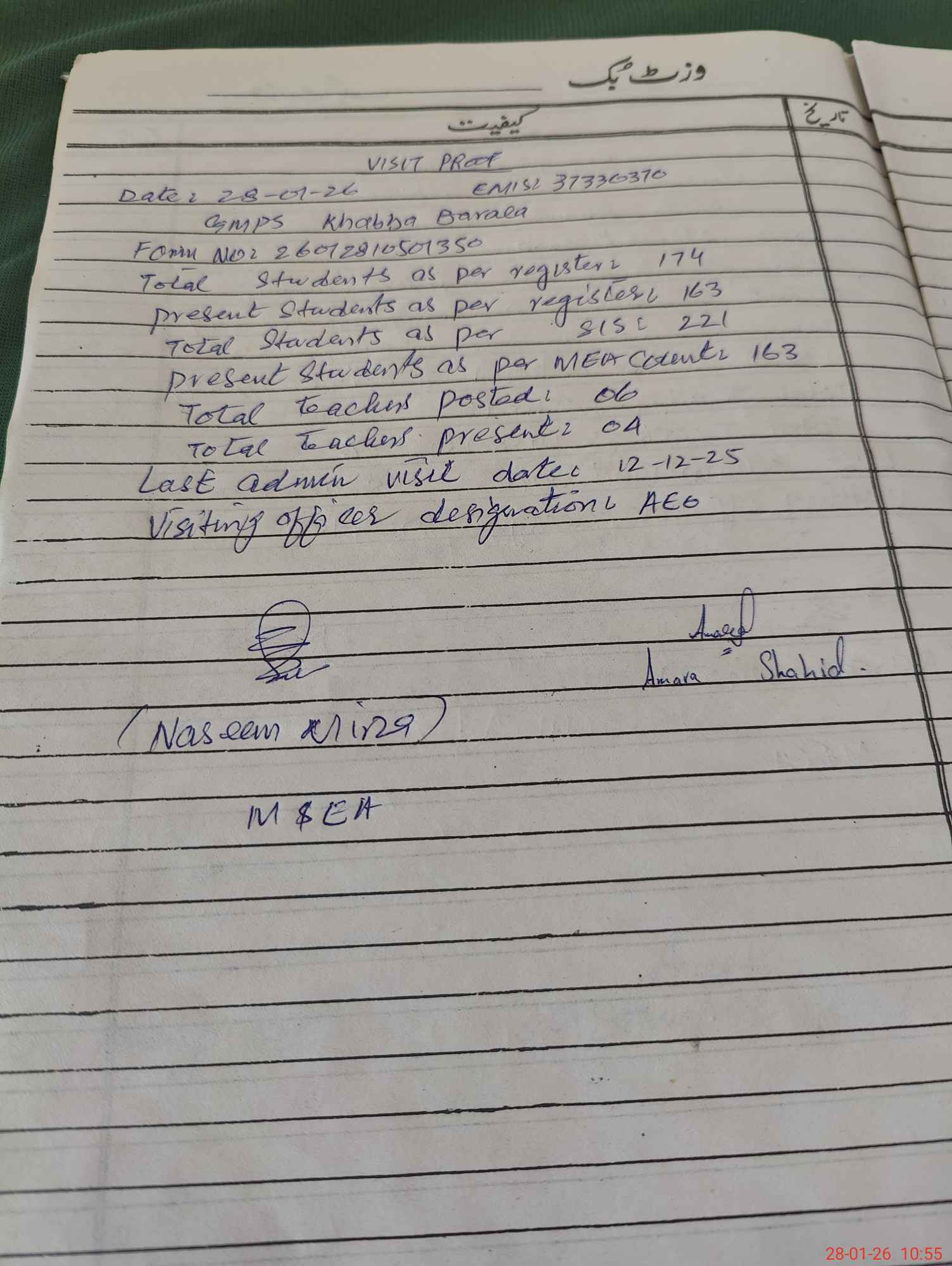 | EMIS Code: 37330370 | Name of School: GMPS KHABBA BARALA | |||