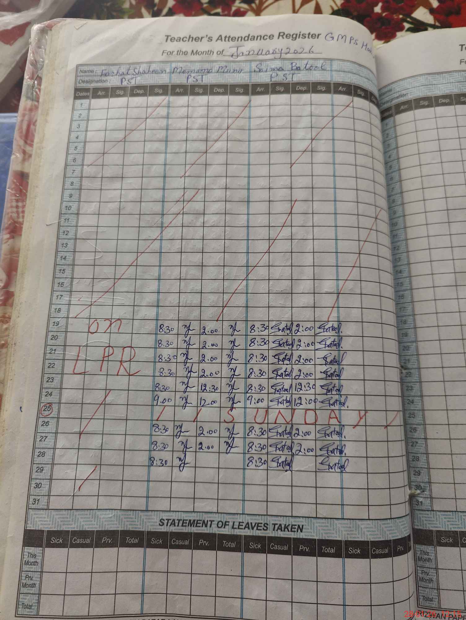 | Leave | Duty | Absent | Maternity | Medical | Ex- Pak |