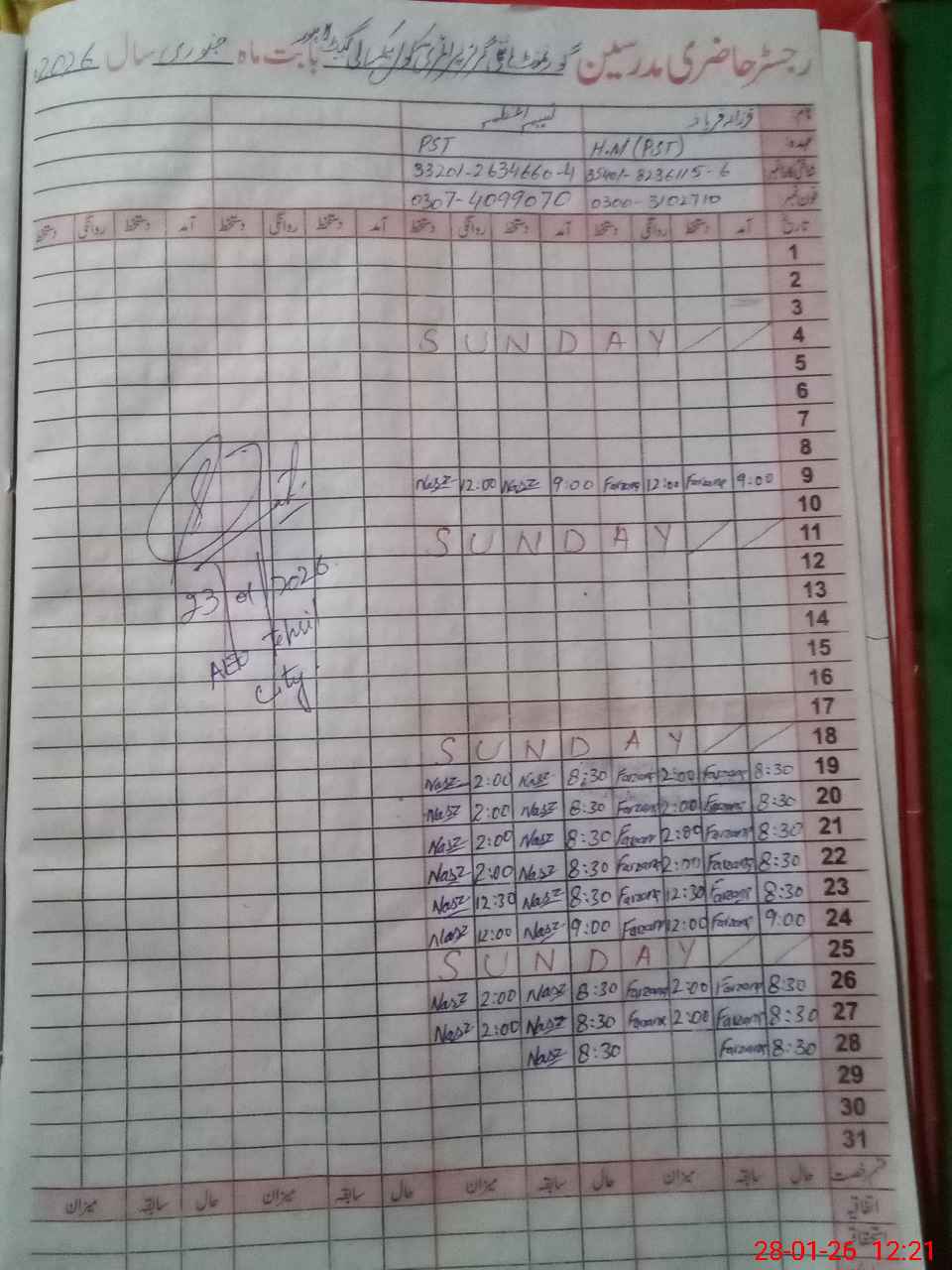 | Name: Fa**** Fa**** Designation: (School Headmaster's/Headmistress's) PST Phone/Cell Number: 03**** |