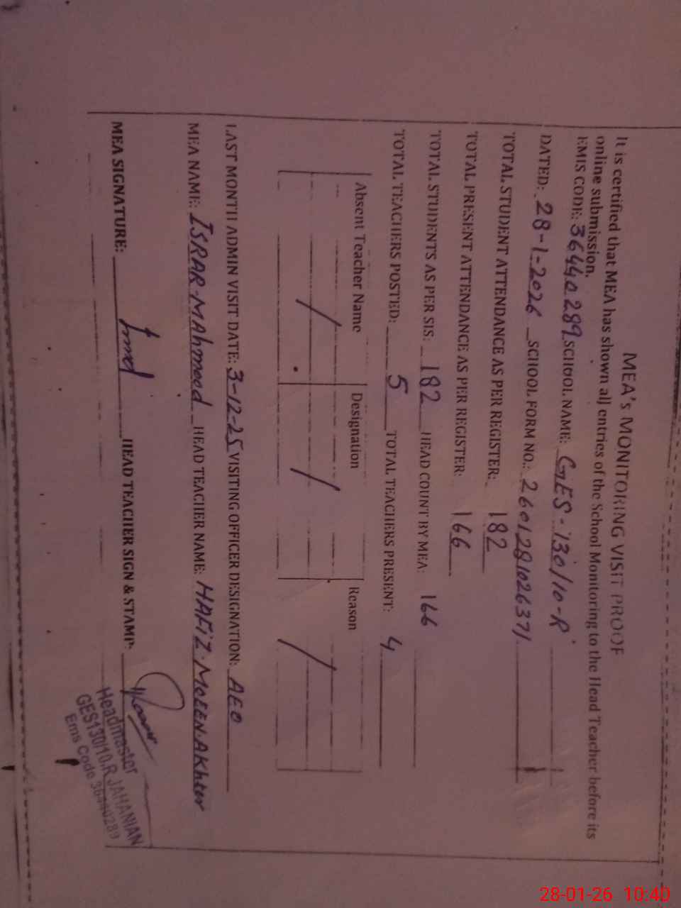 | EMIS Code: 36440289 | Name of School: GES 130/10-R, JAHANIAN | |||