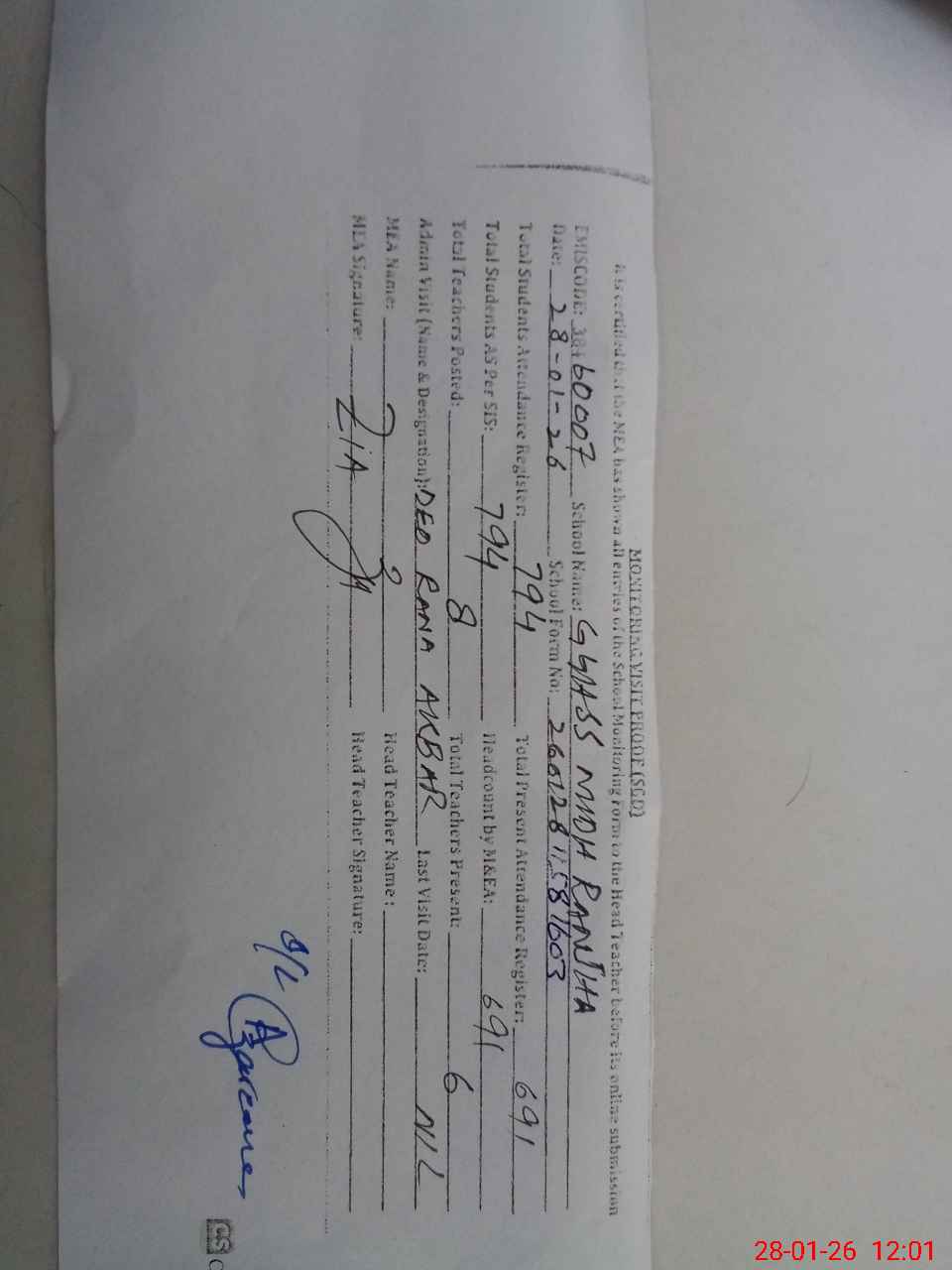 | Certified that this School was Inspected by the Undersigned MEA/DMO Today and the Information Stated Above is as Per Record. | |||||