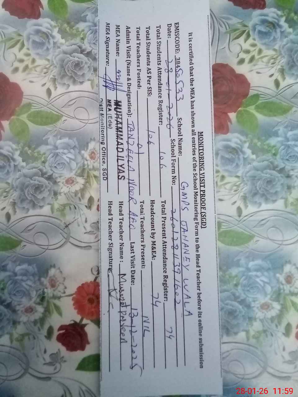 | EMIS Code: 38450533 | Name of School: GMPS JAHANEY WALA | |||