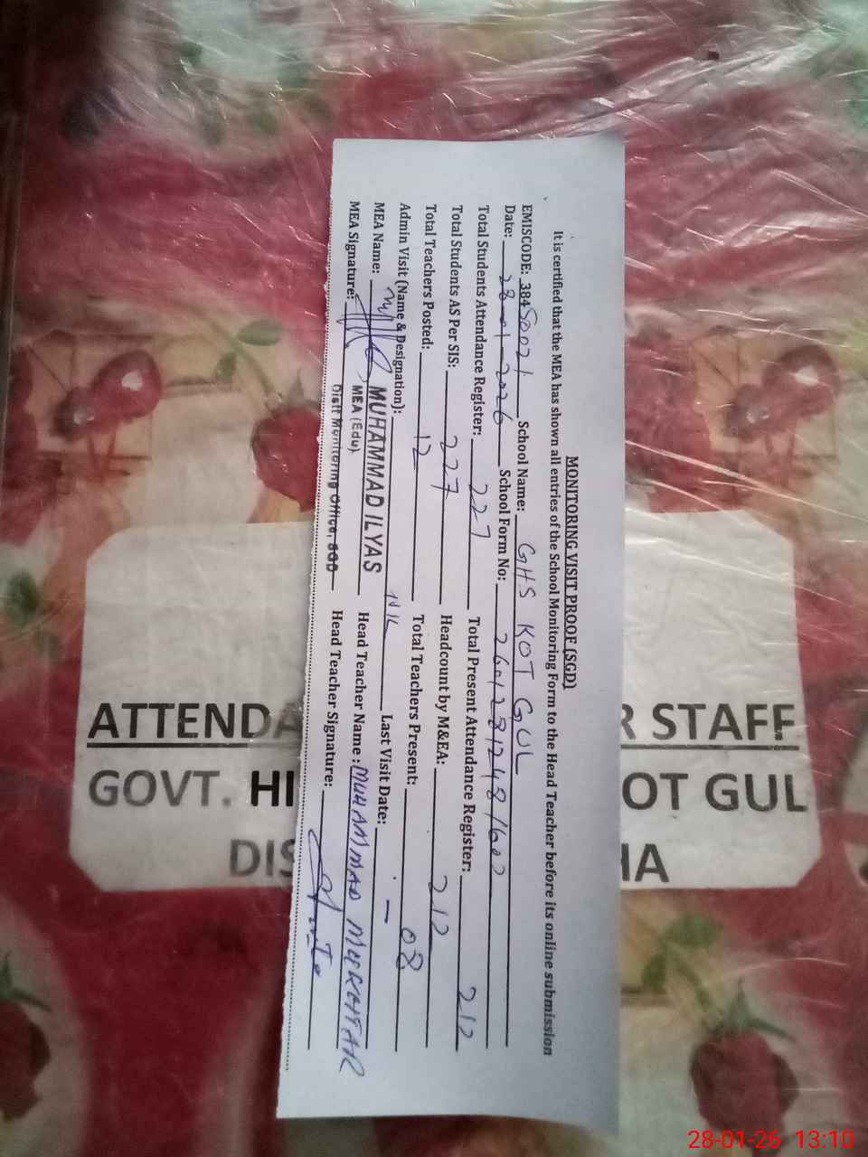 | EMIS Code: 38450021 | Name of School: GHS KOT GUL | |||