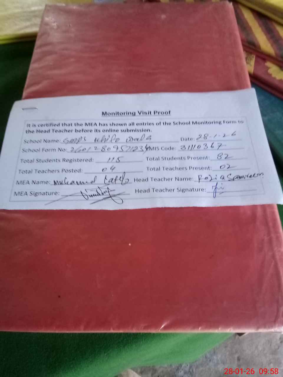 | EMIS Code: 31110367 | Name of School: GMPS KHILO WALA | |||