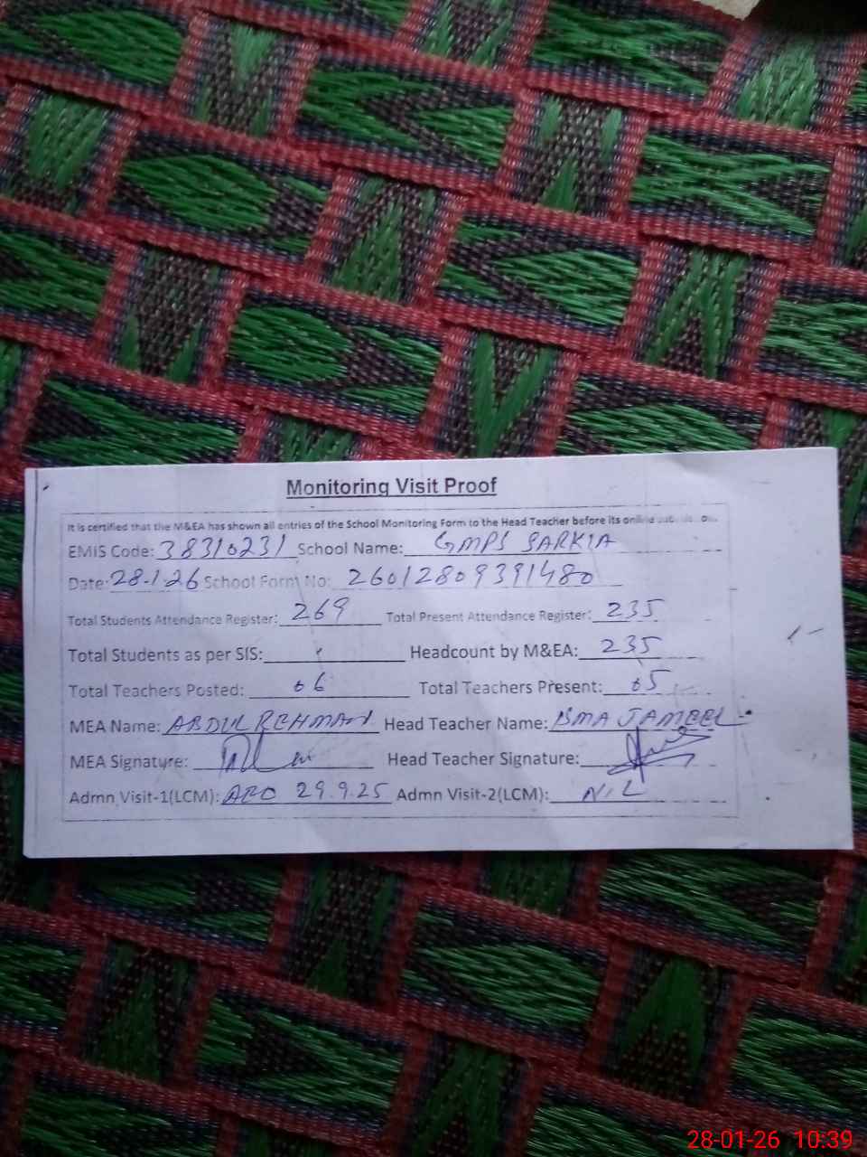 | EMIS Code: 38310231 | Name of School: GMPS SARKIA | |||