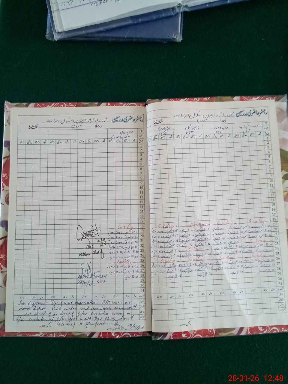 | CNIC | Full Name | Designation | R/C | Absence During Last Calender Month |