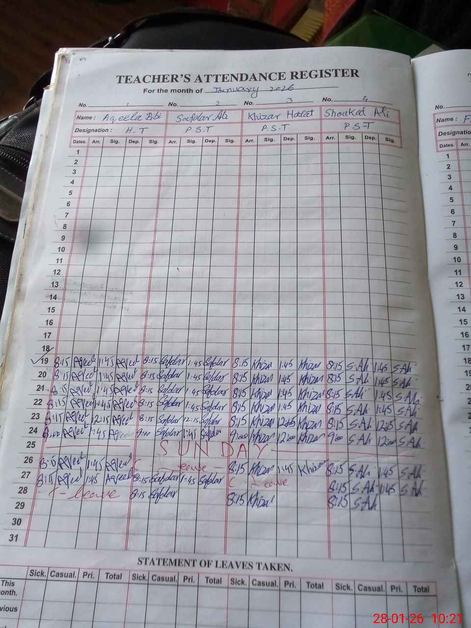| Name: Aq**** Bi**** Designation: (School Headmaster's/Headmistress's) PST Phone/Cell Number: 03**** |