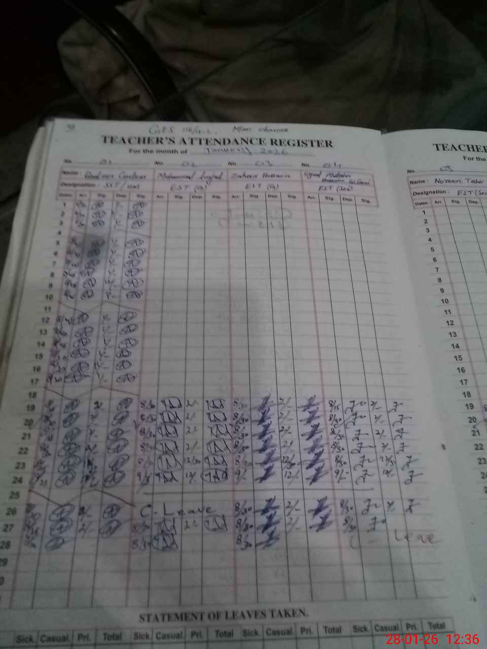 | Leave | Duty | Absent | Maternity | Medical | Ex- Pak |