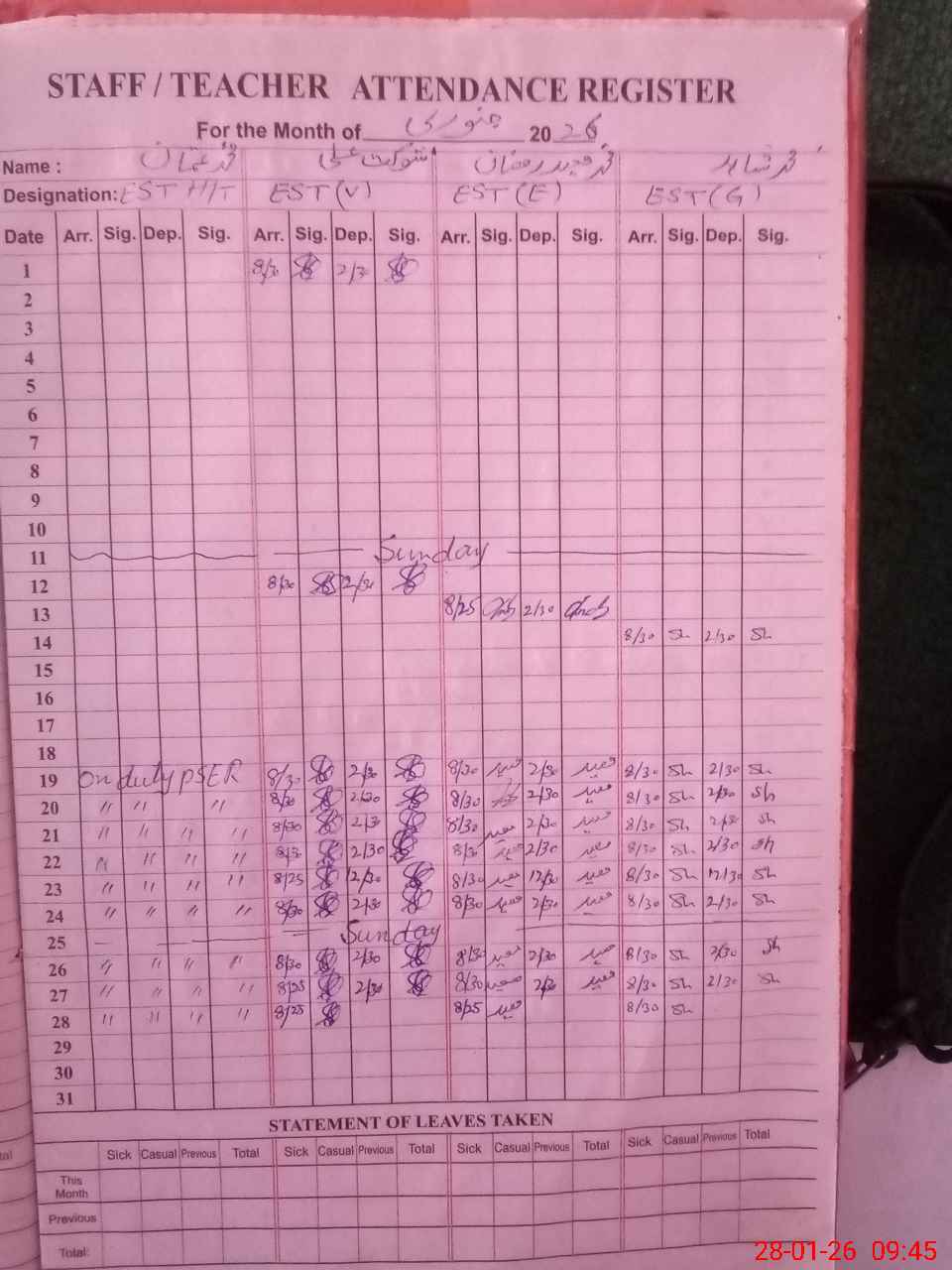| 34**** | Ma**** Hu**** | PST Science/Maths | Regular | 0 | 0 | 0 | 0 | 0 | 0 | 0 | 0 | 0 | Absent (Un-Authorized) |
