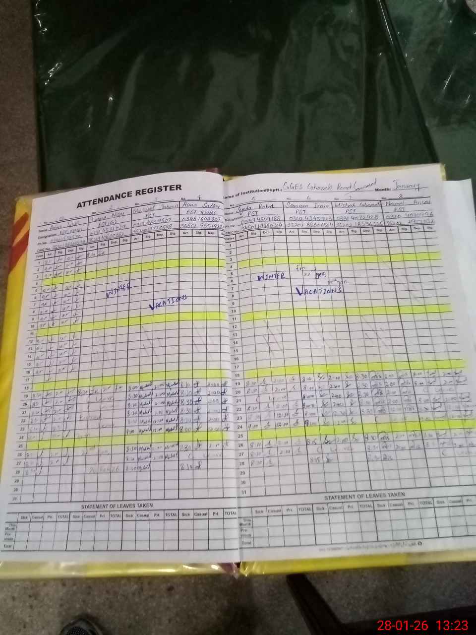 | CNIC | Full Name | Designation | R/C | Absence During Last Calender Month |