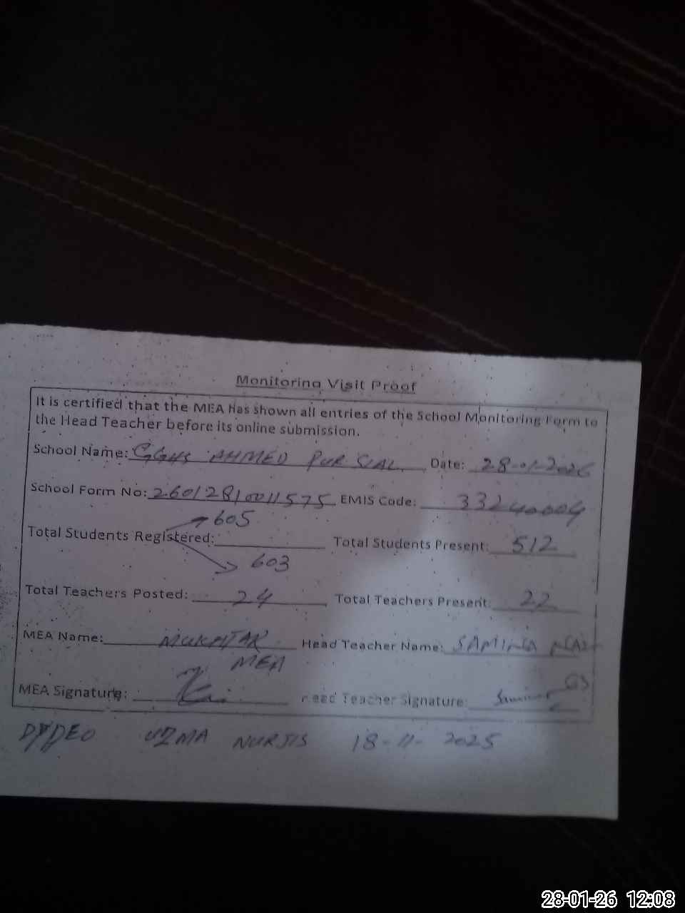 | EMIS Code: 33240004 | Name of School: GGHSS AHMAD PUR SIAL | |||