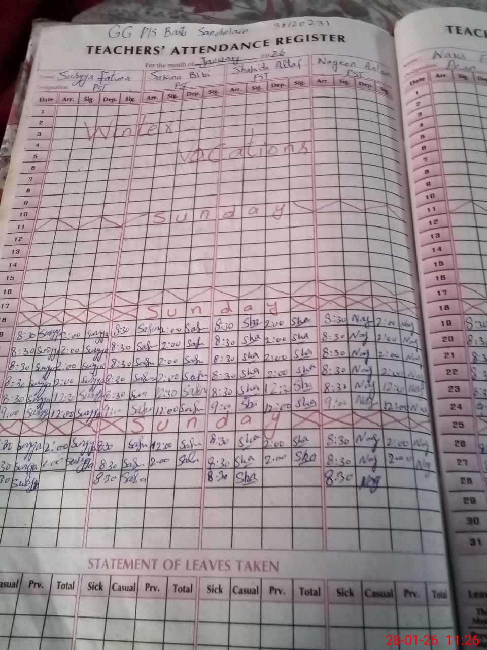 | Leave | Duty | Absent | Maternity | Medical | Ex- Pak |