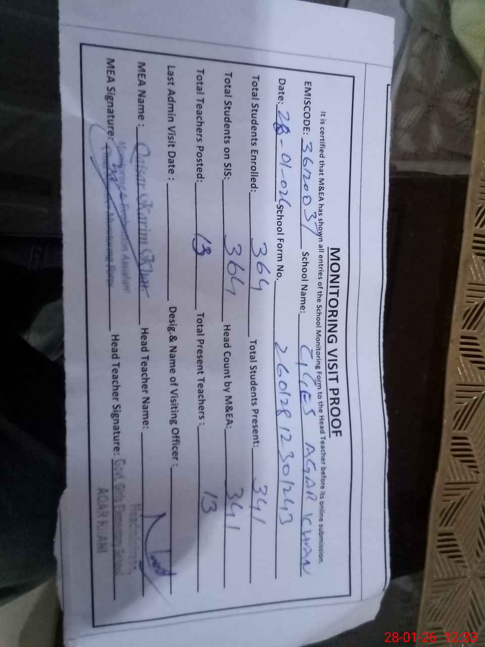 | EMIS Code: 36120037 | Name of School: GGES AGAR KHANI BASTI MAHRAM SHUJABAD | |||
