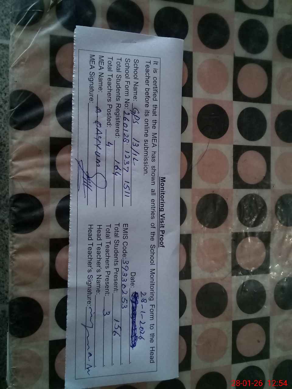 | EMIS Code: 39330253 | Name of School: GPS CHAK NO 13/1L | |||