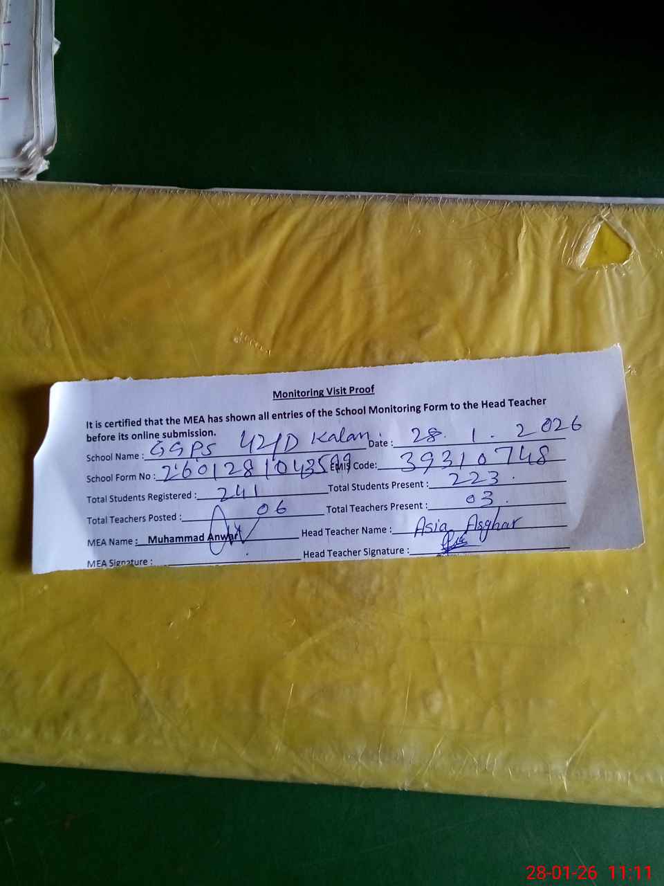 | EMIS Code: 39310748 | Name of School: GGES 42/D KALAN | |||