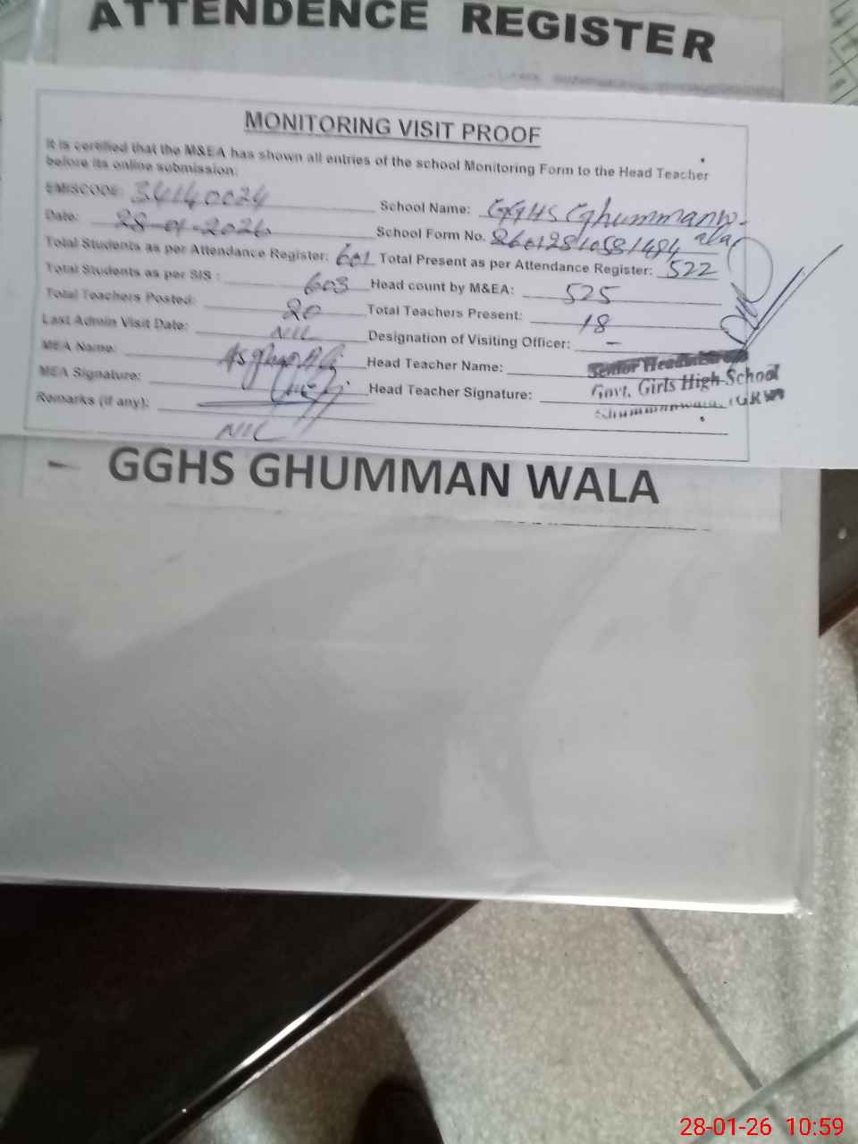 | EMIS Code: 34140024 | Name of School: GGHS GHUMMAN WALA | |||