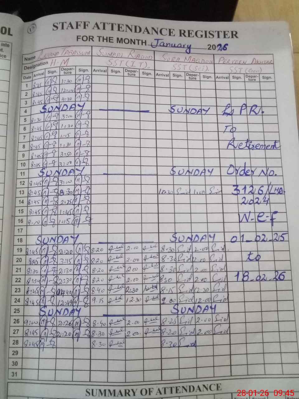 | 35**** | At**** Ba**** | PST Science/Maths | Regular | 0 | 0 | 31 | 0 | 0 | 0 | 0 | 0 | 0 | Absent (Un-Authorized) |