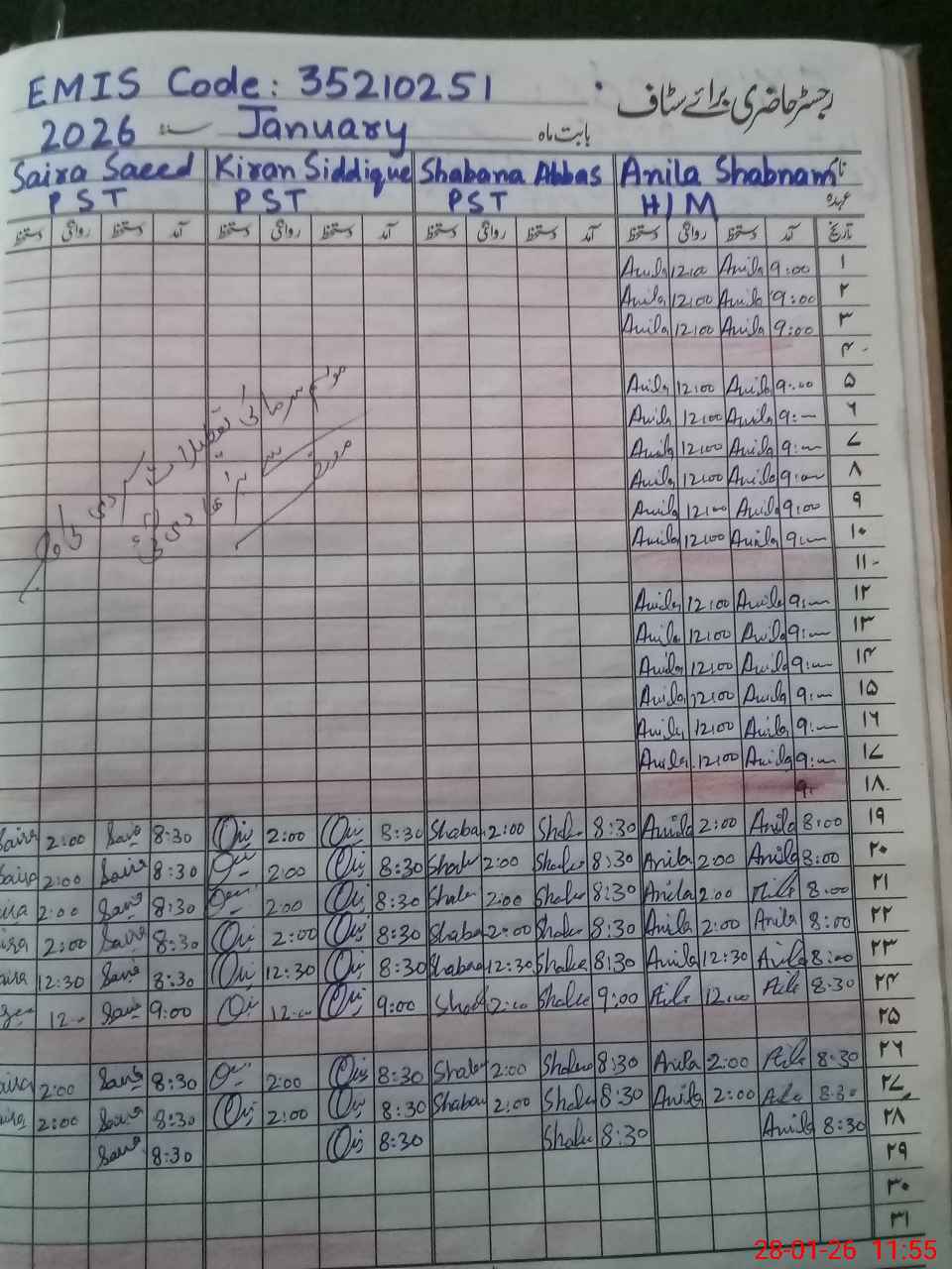 | CNIC | Full Name | Designation | R/C | Absence During Last Calender Month |