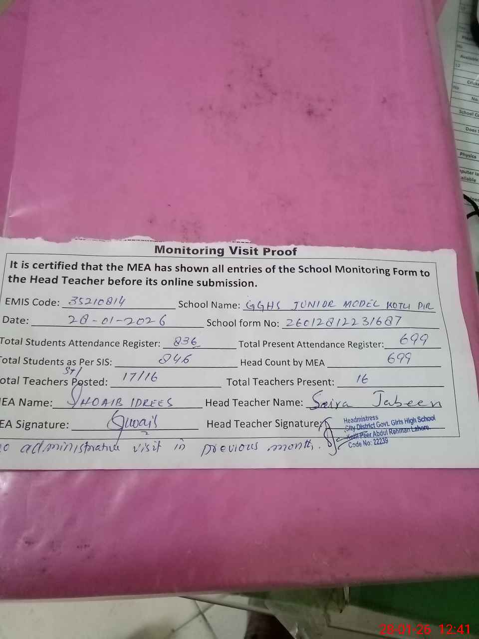 | EMIS Code: 35210814 | Name of School: GGHS JUNIOR MODEL KOTLI PIR ABDUL REHMAN (EX-MCL) | |||