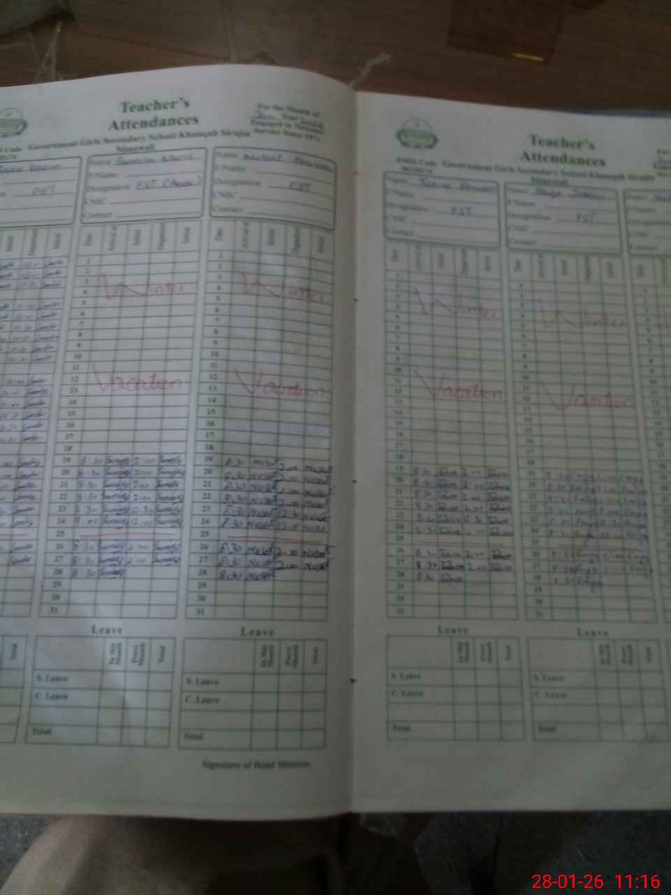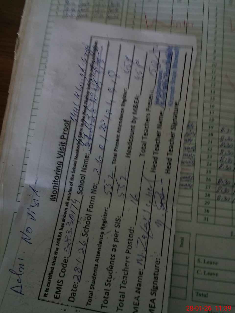 | Attendance Register | Head Teacher | MEA with School | Visit Proof |