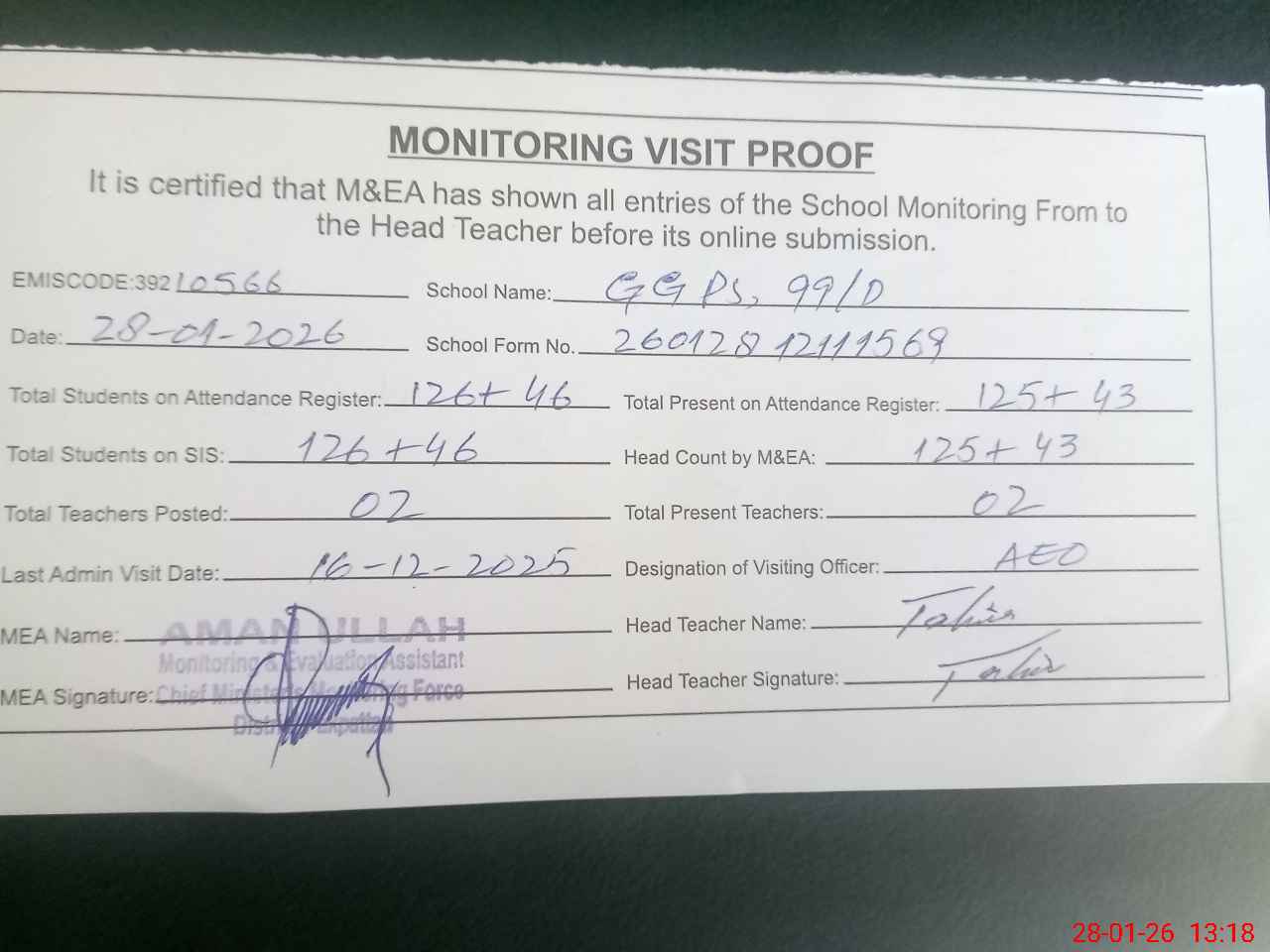 | EMIS Code: 39210566 | Name of School: GGPS 99/D | |||