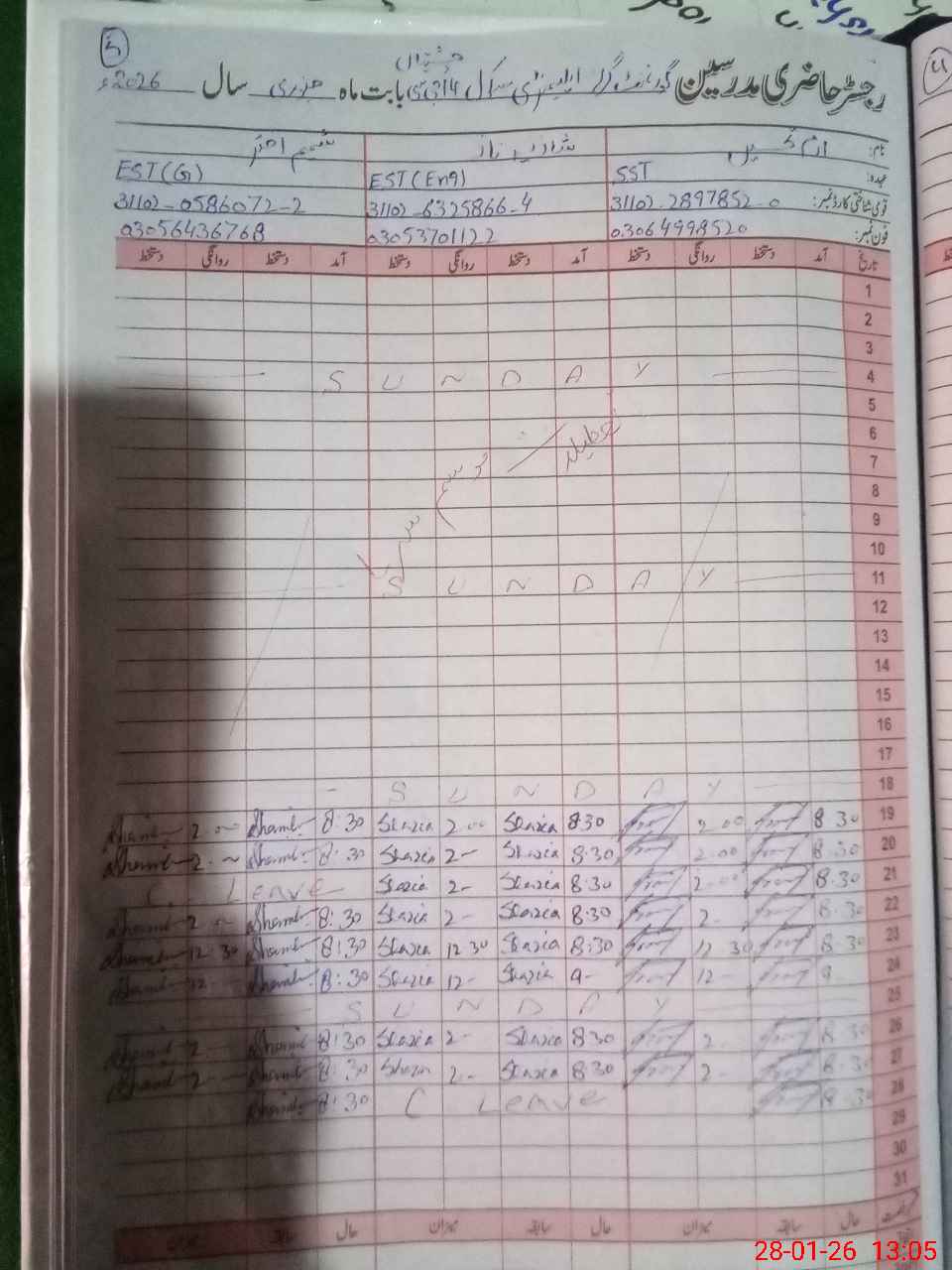 | CNIC | Full Name | Designation | R/C | Absence During Last Calender Month |