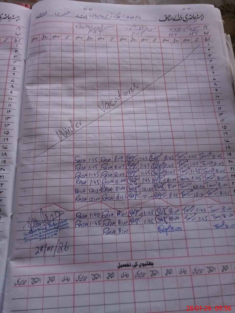 | CNIC | Full Name | Designation | R/C | Absence During Last Calender Month |