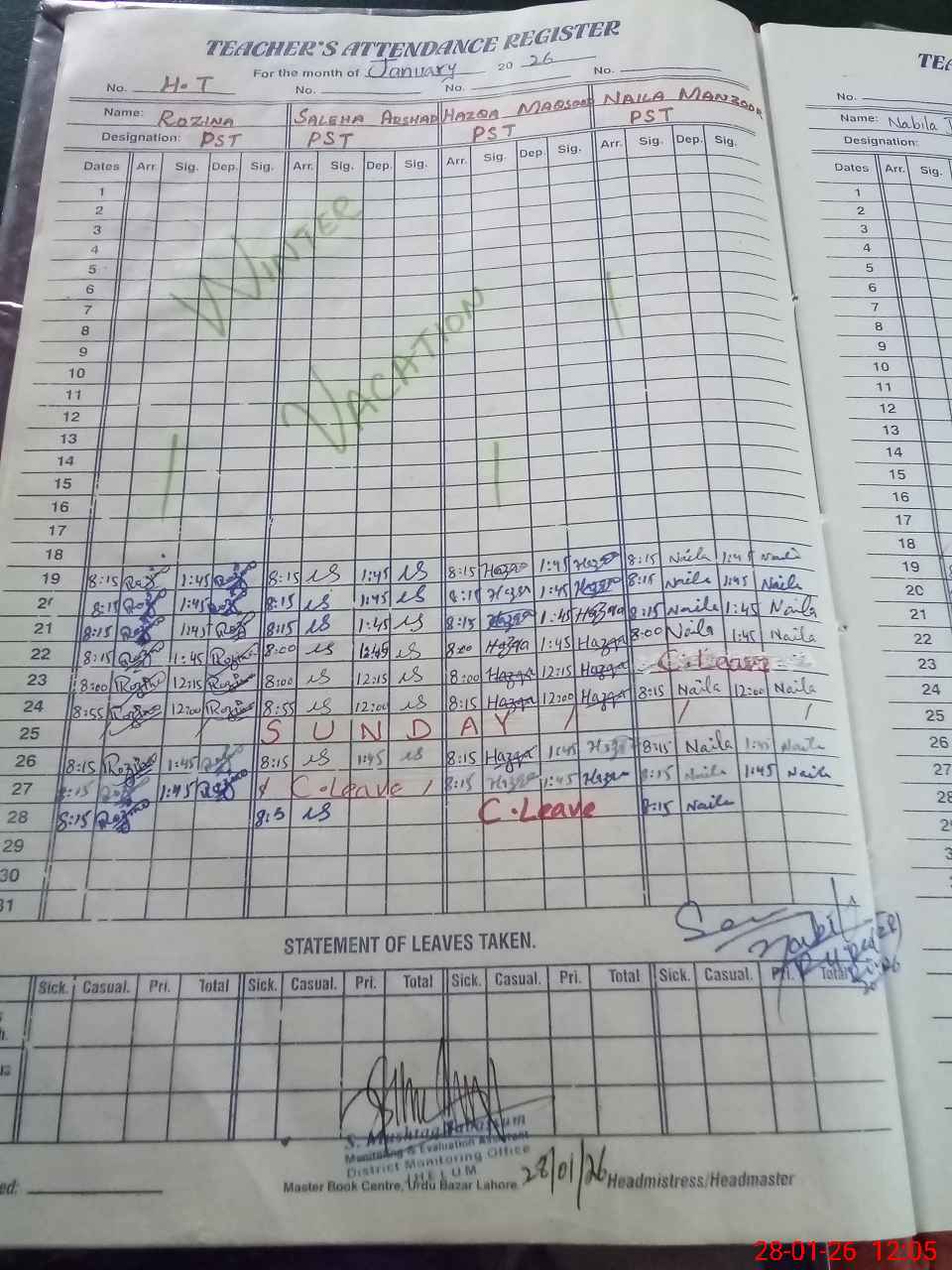 | Leave | Duty | Absent | Maternity | Medical | Ex- Pak |