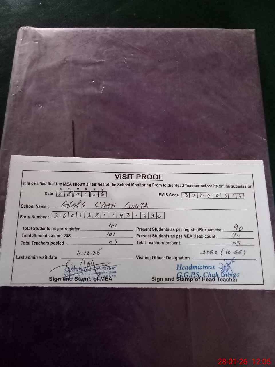 | EMIS Code: 37240414 | Name of School: GGPS CHAH GUNJA | |||