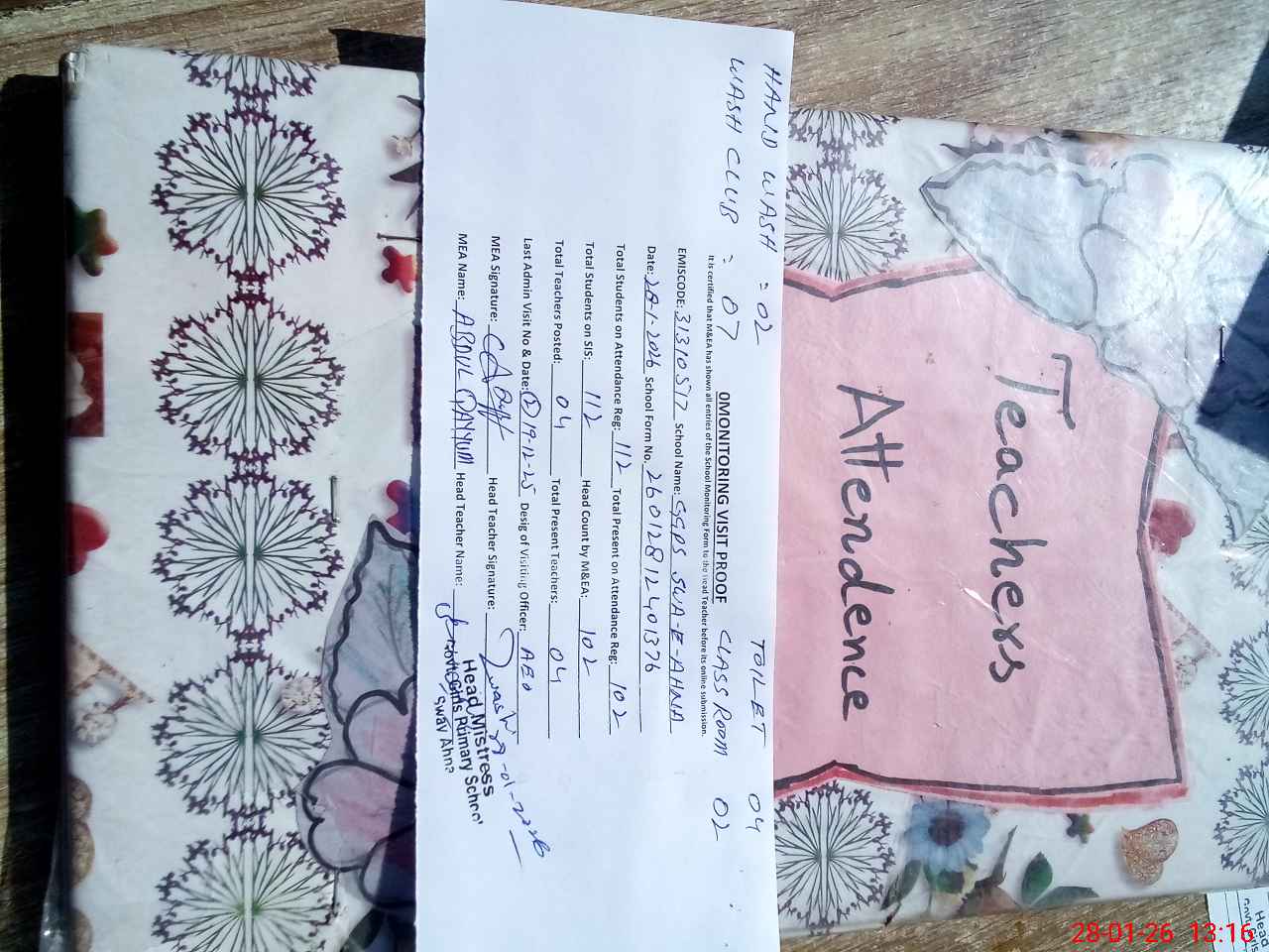 | Attendance Register | Head Teacher | MEA with School | Visit Proof |
