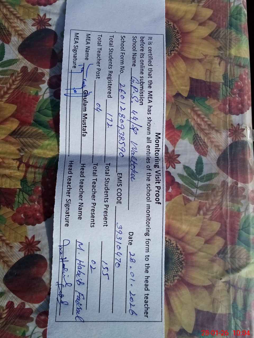 | EMIS Code: 39310470 | Name of School: GPS CHAK 44 SP WALTOHA | |||