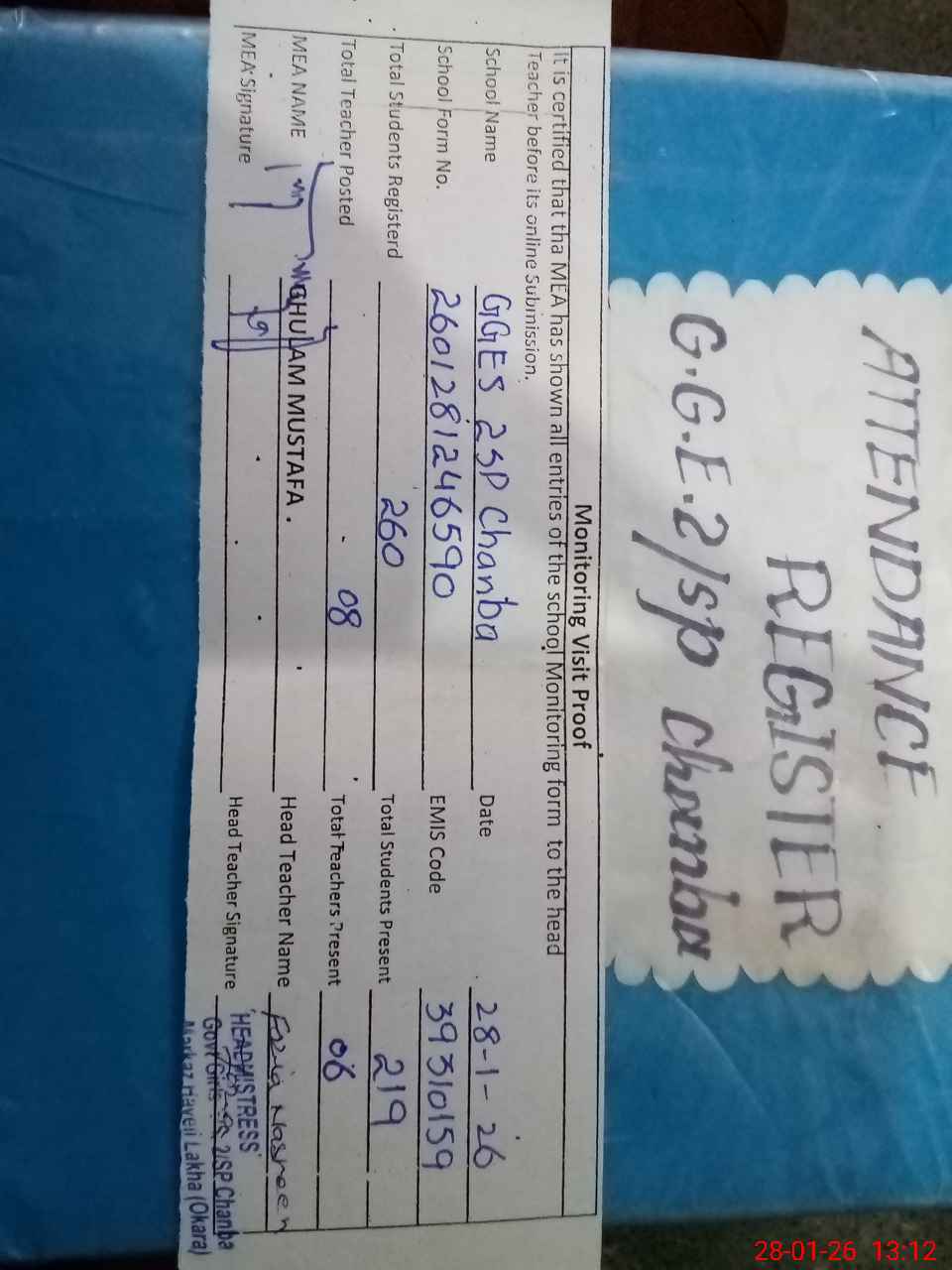 | EMIS Code: 39310159 | Name of School: GGES 2 SP CHANBA | |||